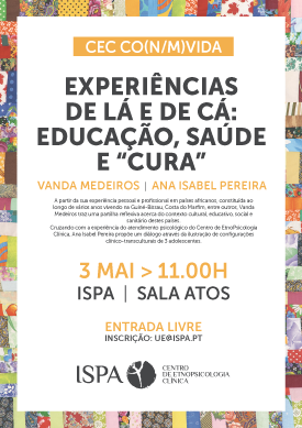 Irá realizar-se, no próximo dia 3 de maio de 2019, o 2.º encontro do ciclo CEC Co(n/m)Vida, à luz do tema Experiências de lá e de cá: Educação, Saúde e “Cura”.